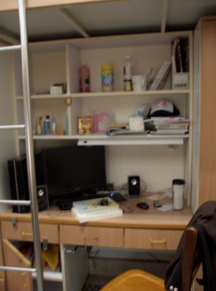 她說宿舍好乾淨,如果在北京的話不論怎麼擦都還是有一層灰。