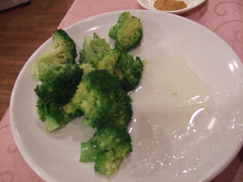 照片是我吃掉兩三朵花椰菜後拍的,拍完就沒再動筷子了。orz