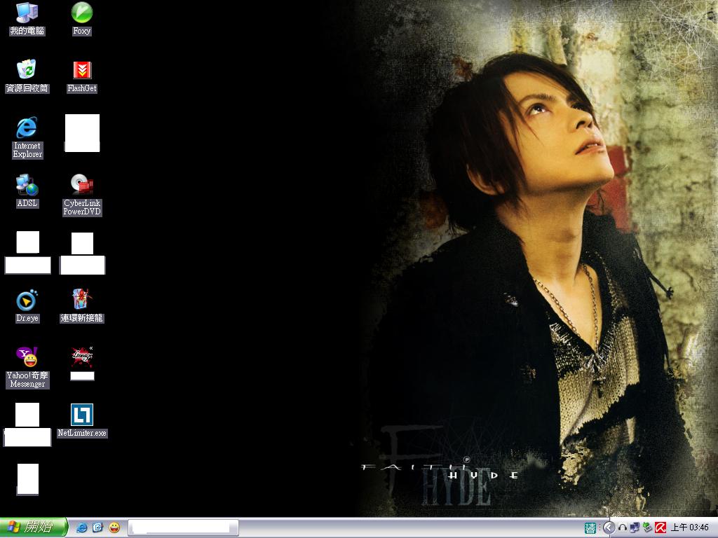 託杞瞳的福, 我家桌面現在變成... 這樣!!(噴血 唔喔喔喔喔~~~看著桌面傻笑XDD HYDE你這個偽大叔XD 最近缺血...錢包也是.....(喂 誰要來讓我吸血~~(巴 Ken明明就是年紀最小的,看起來整個就大叔風韻哪XD Hyde好性感...ˇˇ額頭、眉毛、眼神、鼻子、嘴型、鎖骨(??)咿呀呀呀~~~~ 應該說他整個人看起來就是很性感XDD當然歌聲也包含在內ˇ(開小花 一整個晚上就泡在youtube上=w=